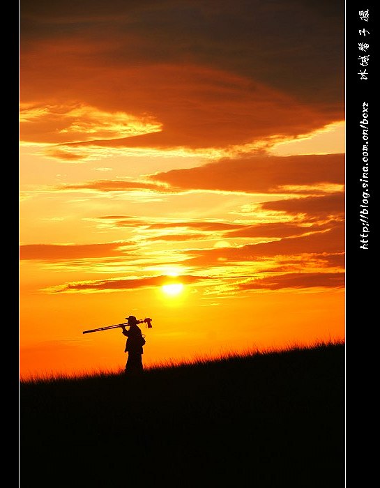 草原之晨是如此的静谧,又是充满了神秘。霞光过后太阳便一下就冲破了遮着它的阴云,向我们露出了笑脸,这个时候只听得的是咔咔的快门声,几乎无言。虽然此次日出不太璀璨,不够壮观,在草原上这只是一次太过平常的日出,但对我来说,它是我的第一次,草原上日出大戏的震憾是在心底氲氤的,慢慢地回荡着,任它在每个回忆的时候充满着感动与期盼。