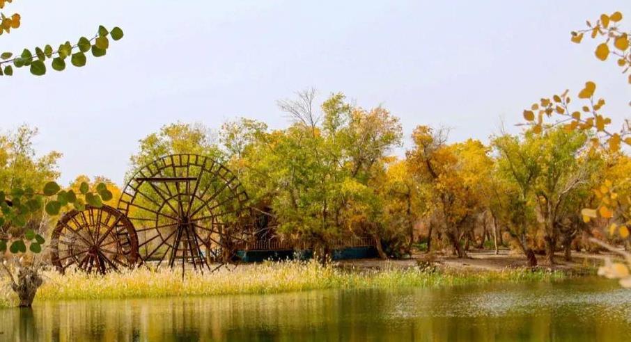 都说胡杨耐旱,但它和水才是最般配的组合,阳光打在胡杨叶子里、树干上,映照在清澈的水里形成明晰的影子