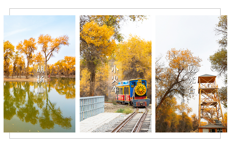 公园中还可以乘上环绕林中湖的环形轻轨小列车环游其中,乘小火车穿行在胡杨林间“犹如在画中行”,沿途可以看到百鸟湖、天鹅湖等景色。