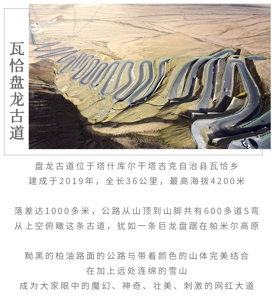 活动:盘龙古道瓦恰公路似一条黑龙盘绕在山间,横卧于昆仑山脉,全部盘山公路长约30公里,竟然超过600个S弯道;