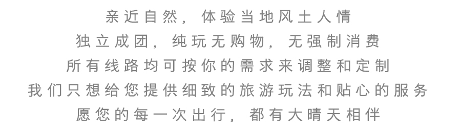 本行程是纯玩自由行,以风景游玩和休闲度假为主,行程中间客人可根据自己合理的意愿来安排游玩时间,没有任何强制性的景点或购物点安排。此行程单加盖本公司印章后即具旅游合同之法律效力,全面享有我公司各项服务保障、紧急救援及保险理赔等服务,报价不含税。