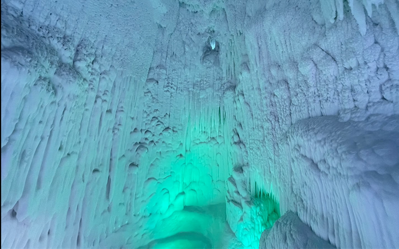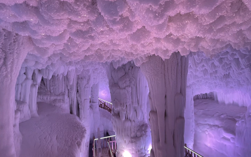 隐藏在深山之中已有300多万年,洞内温度常年在零下10度以下,需穿好羽绒服和斗篷。