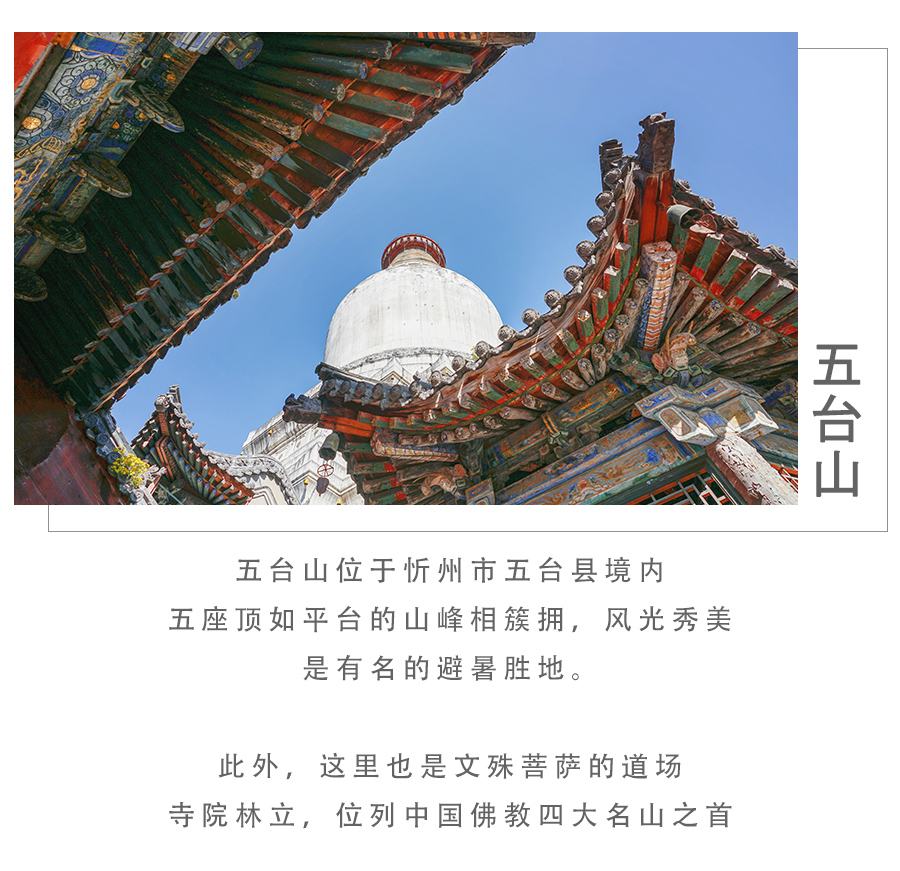 活动:五台山五台山为佛教四大名山之首,这里形成了显密并行、诸宗竞秀的佛教文化特色,拥有众多的寺庙和佛教造像。