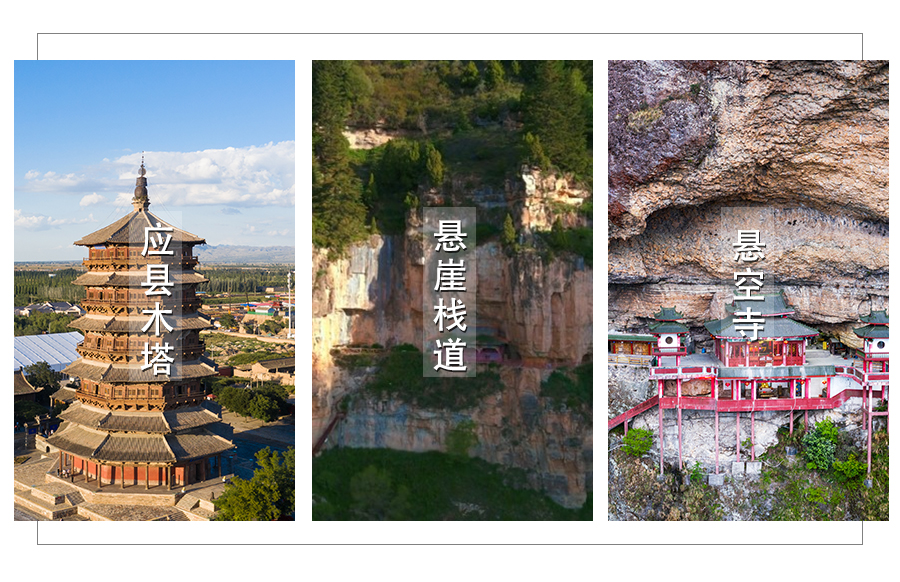 应县木塔与意大利比萨斜塔、法国巴黎埃菲尔铁塔并称为“世界三大奇塔”,被吉尼斯认定为世界最高的木塔。
