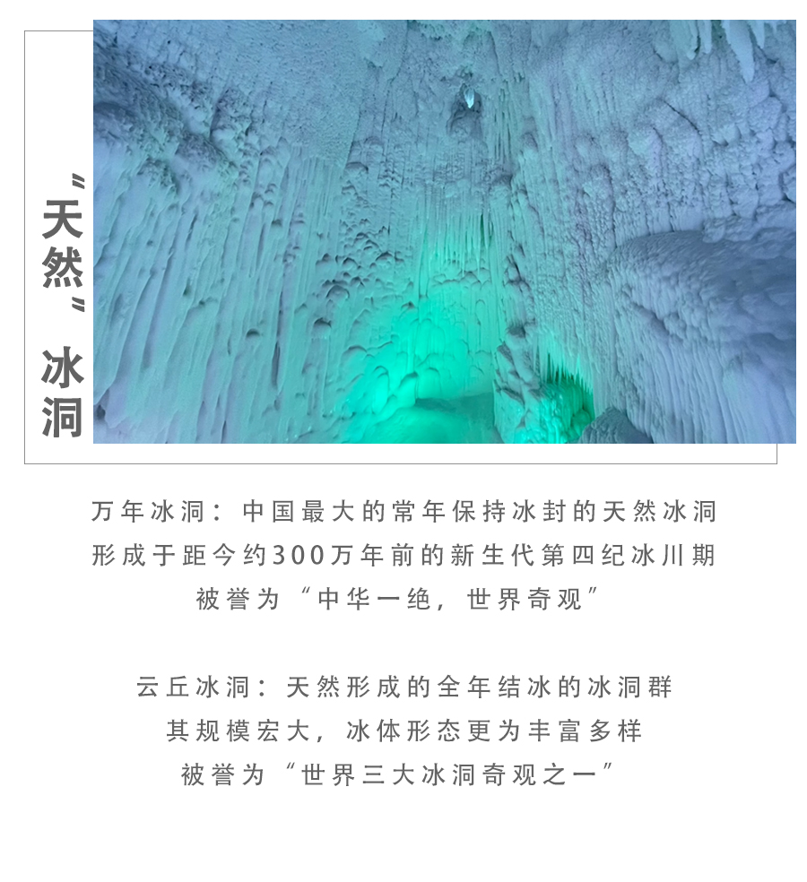 活动:万年冰洞洞内制冷机制强、冰储量多,已开发部分分三层,堪称一个冰的世界。