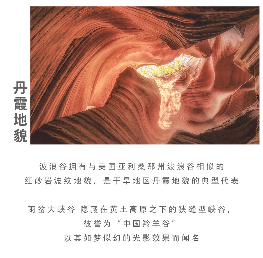 晴天的阳光下,红色砂岩色彩鲜艳夺目,傍晚的夕阳则为其增添神秘色彩。