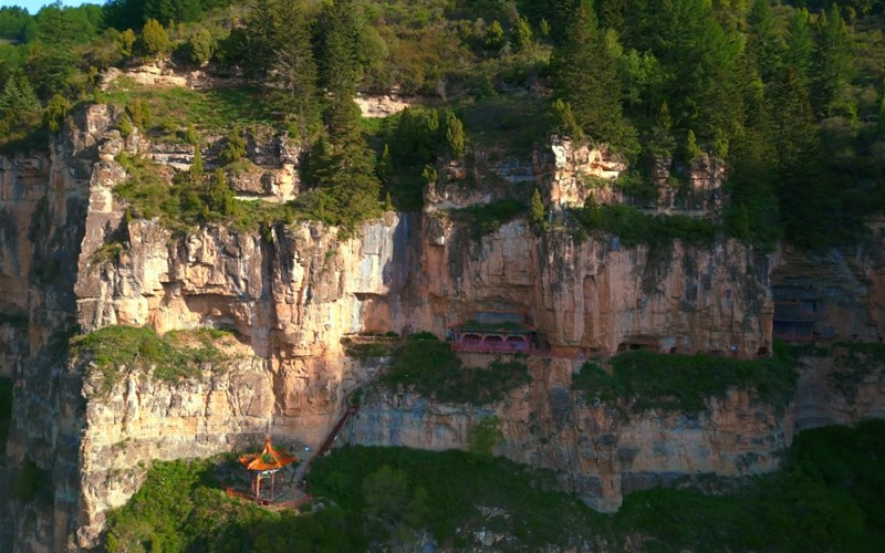 构成了我国佛教界罕见的水平帘洞式悬空古刹栈道群。