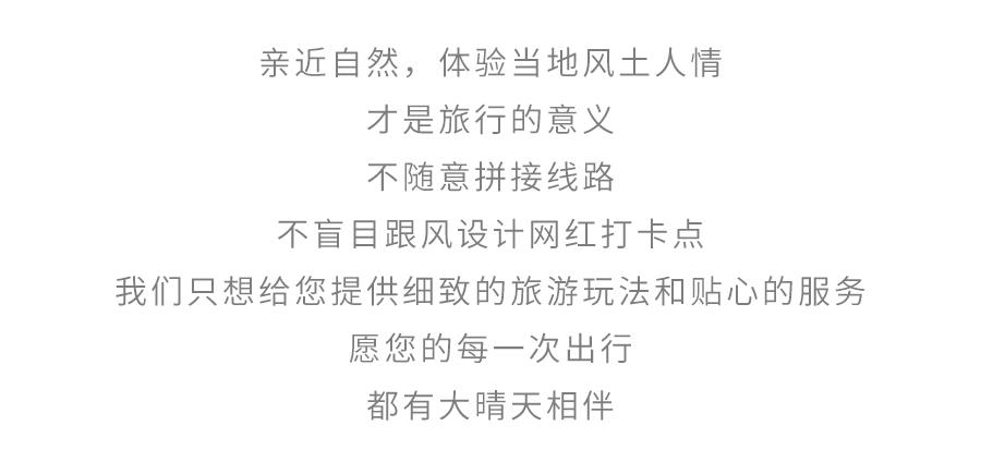 本行程是纯玩自由行,以风景游玩和休闲度假为主,行程中间客人可根据自己合理的意愿来安排游玩时间,没有任何强制性的景点或购物点安排。此行程单加盖本公司印章后即具旅游合同之法律效力,全面享有我公司各项服务保障、紧急救援及保险理赔等服务,报价不含税。