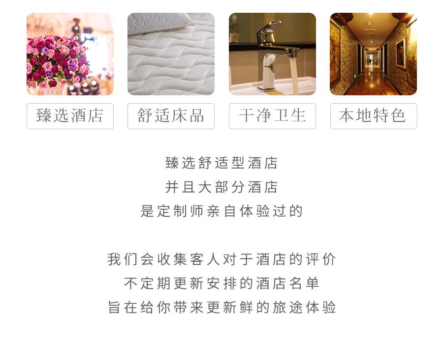 2.用餐:全程不含午餐与晚餐,部分酒店含早餐,以实际酒店安排为准;游客自由选择用餐及控制费用(我们一直认为当地美食是很重要的旅游元素之一,不想让团餐绑架了您的旅行)