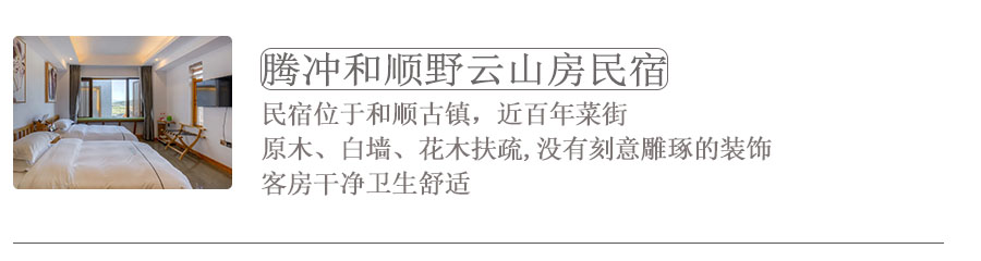 住宿:(和顺古镇,腾冲和顺野云山房民宿或同等级酒店)