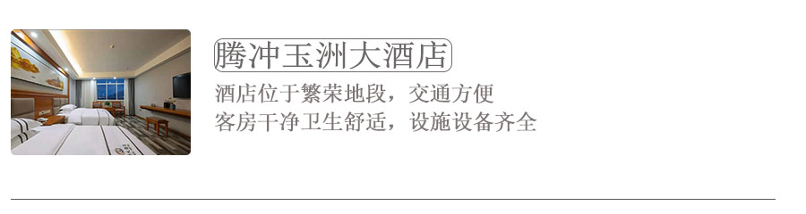 住宿:(腾冲,腾冲玉洲大酒店或同等级酒店)